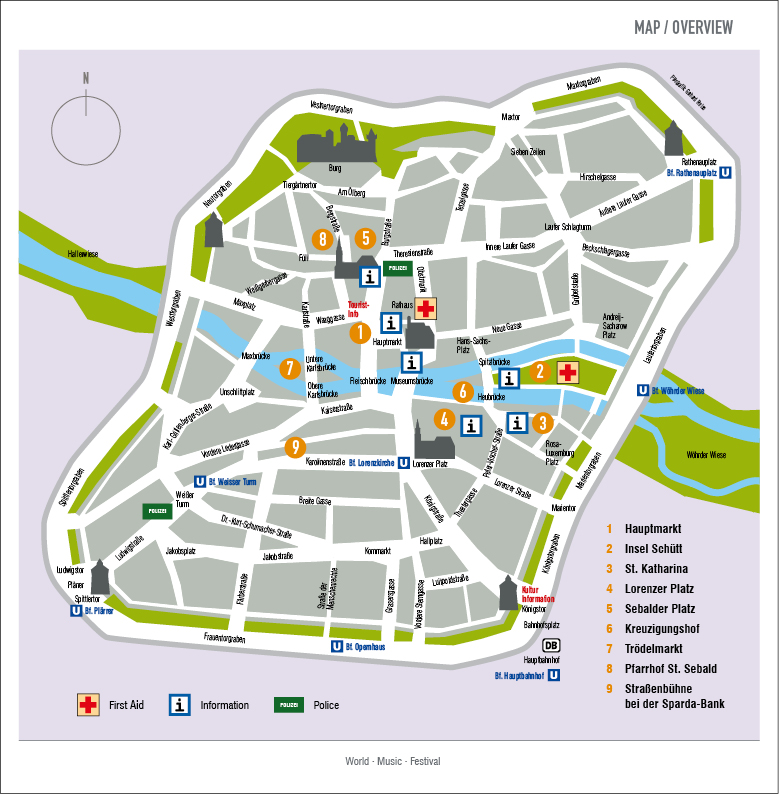 In the Sebald part of the Old Town, just below Nuremberg Imperial Castle, next to the Old City Hall, there is St Sebaldus’ Church. The slight slope of the adjacent square makes this a wonderful scenario for a festival stage.