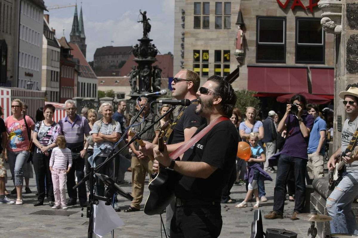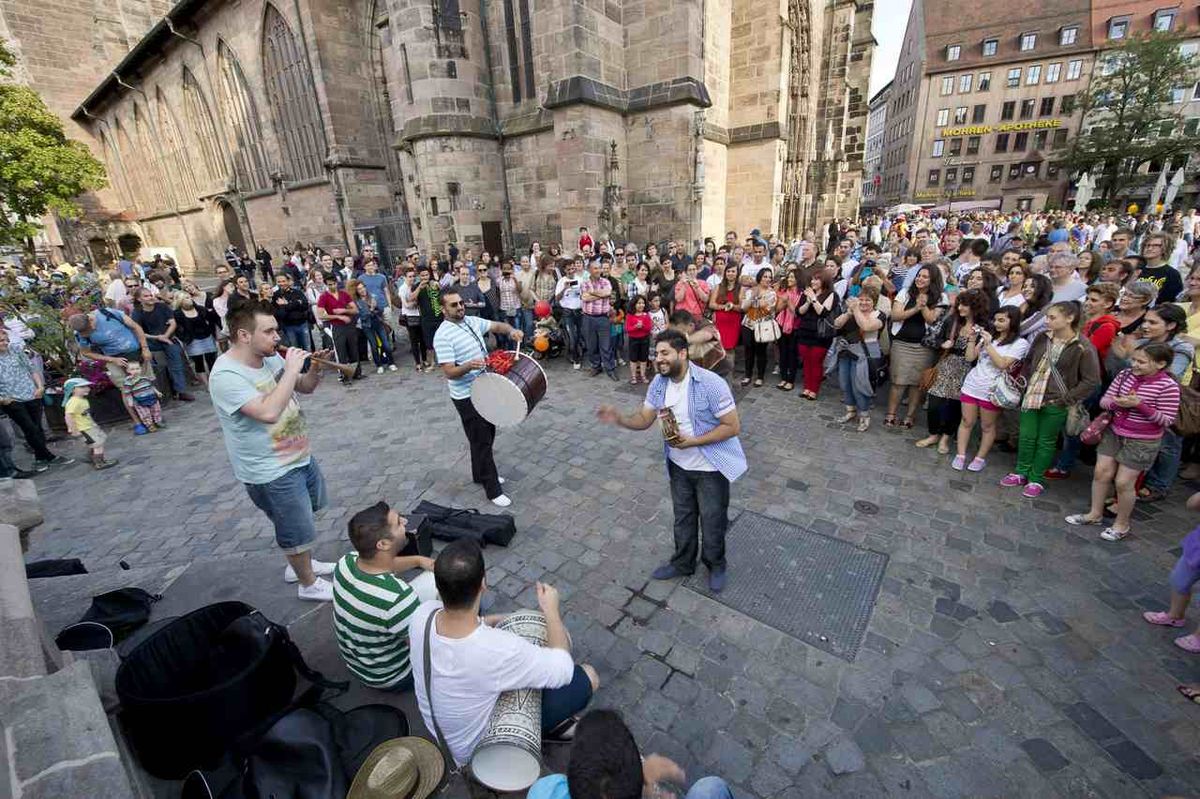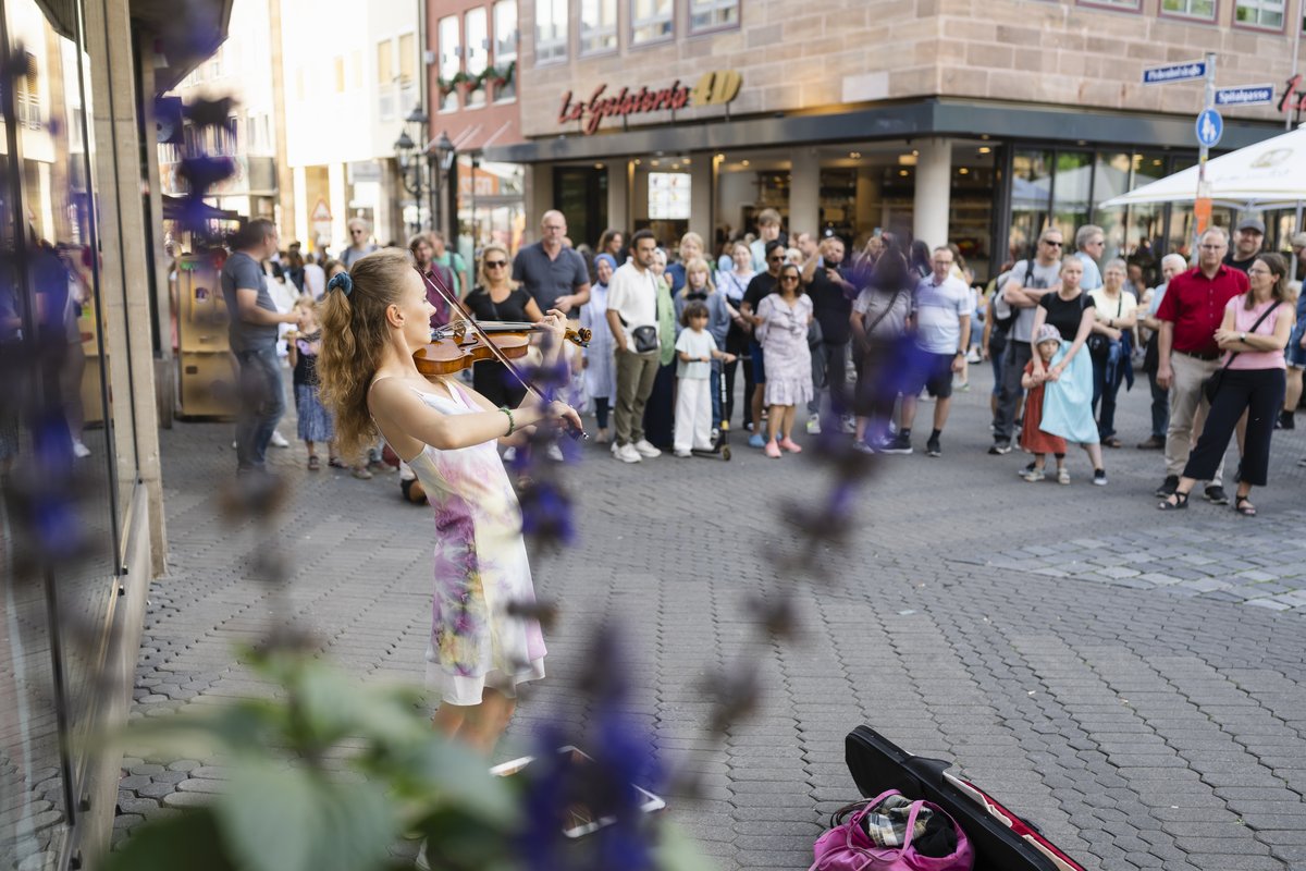 Was wäre das Bardentreffen ohne seine Straßenmusikerinnen und Straßenmusiker? Vermutlich nur halb so schön. Neben internationalen Musikgrößen auf den offiziellen Bühnen des Festivals hat sich auf den Plätzen und in den Gassen der Stadt eine vielfältige Straßenmusikszene etabliert. Singer-Sogwriter*innen, Chöre, Bands und Solisten aus nah und fern verwandeln die historische Nürnberger Altstadt in eine faszinierende, lebendige Konzertbühne.